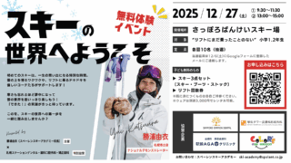 お知らせ 無料スキーイベント協賛のお知らせ この度、当院はプロスキーヤー勝浦由衣さんによるスキー体験イベントに協賛いたします。イベントの詳細や参加方法につきましては、下記チラシをご確認ください。お申し込みフォームはこちら 2025.11.27 お知らせ