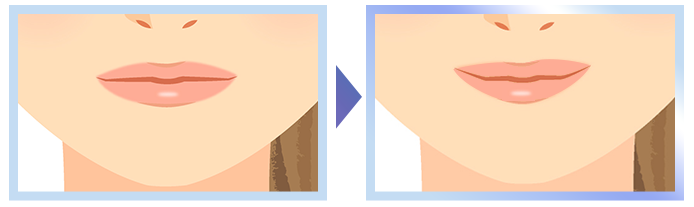 平常時に口元が『への字』に下がっている方や笑った時にも口角が上がりにくい方は、口角を下に引っ張る筋肉の力が強いので、ここにボトックスを注入することで口角を上がりやすくします。